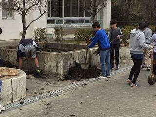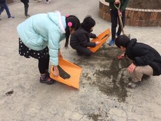 6年生は6時間目に、校庭の側溝清掃の作業に取り組みました。卒業を前に、学校のために何かできることを、ということで取り組みました。側溝には校庭から流れ入った砂がたっぷりとたまっていました。合わせて、ビオトープから取り出した土も運びました。力を合わせてどんどん砂を掻き出し、運んでいく6年生たちの姿は、とっても頼もしく見えました。