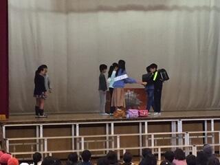 今朝は体育館で児童集会を行いました。代表委員会による「ユニセフ」をテーマにした集会です。これからユニセフ募金をするにあたり、その意義や、どうように役立っているのかについて、代表委員会の人たちが劇にして演じながら、わかりやすく伝えてくれました。水道を作りきれいな飲み水を確保すること、乳幼児への食料・栄養の支援、学びに必要な文具等の支援など、具体的な数字も含めながらの説明でした。永山小学校のユニセフ募金んお取り組みは、2月8日(金)・2月9日(土)に行います。