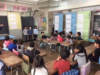来週、低学年は「あそびの広場」を行います。2年生が、作って遊ぶいろいろなメニューを考え、準備し、1年生に教えながら楽しく遊びの交流をしよう、という活動です。今日は、2年生が1年生の教室へ出向き、作り方や遊び方を一生懸命教えていました。手順表を作ったり、実物をうまく使って説明したり、実際にやって見せたりと、1年生が少しでも理解できて、見通しが持てるようにと頑張っていました。きっとたくさん準備や練習をしてきたのでしょう。