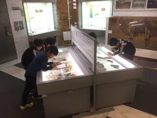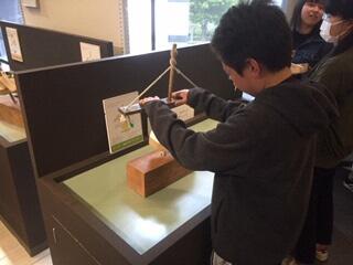 センターでは、大きく分けて4つの活動をしました。展示スペースでの学習、体験コーナーでの学習、屋外の「縄文の村」での学習、そしてまとめとして、ビデオを通しての学習をしました。