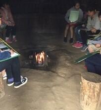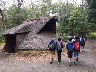 「縄文の村」では、再現された竪穴式住居の中に入ったり、縄文時代の森を再現するために、当時の生活を支えたであろう50種類の木、植物が植えられた森を観察したりしました。ひとつの住居の中で、実際にたき火を用意してくださり、より当時の生活がイメージできるようになっていました。
