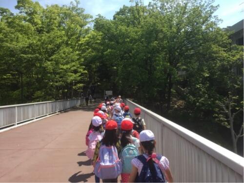 学校から北の方向へ行くと、だんだん低くなり、乞田川にたどり着きました。大きな道、鎌倉街道を確認し、瓜生川の上に作られた遊歩道を辿りながら、学校に戻ってきました。自分たちが住む町。慣れた地域であっても、仲間と一緒に見て歩いたり、テーマや視点を共有しながら探検したりすると、また新たな発見や素朴な疑問が生まれてくるものです。それが、これからの学習の良き燃料になっていくといいな、と思います。