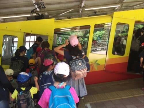 お楽しみの一つ、ケーブルカーです。高尾山の中腹までいきます。