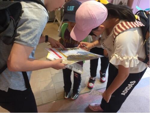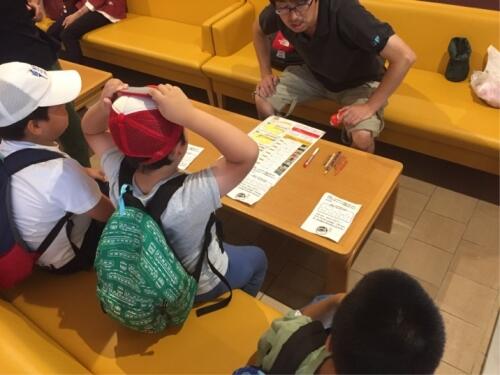 施設での活動、その1はレクリエーションです。施設内を使ったオリエンテーリングです。5つのグループに分かれ、ミッションをクリアしていきます。頑張れ!