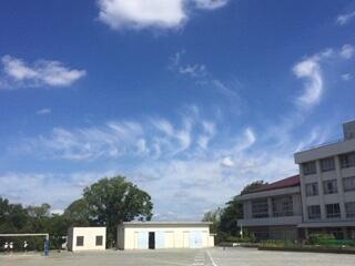 4時間目が始まるころ、太陽の周りに輪になった虹のようなものを見ることができました。「ハロ(日暈:ひがさ)」と言われるそうです。(間違っていたら、ごめんなさい!) 「雲を形成する氷晶がプリズムの役目をして、太陽や月からの光が氷晶の中を通り抜ける際に屈折することで発生する・・・」らしいです。いずれにしても珍しい現象ですね。