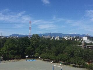 今日は、6月17日(月)です。青空広がり、気温も上がってきましたが、どこかさわやかさを感じる週明けの朝です。暑くて湿度の多いこの時期ですが、今日は西側の山々がきれいに見え、尾根や谷の凹凸も見て取れるくらいです。先日降った雨が、富士山上空では雪に変わり、新たな冠雪もきれいに見えます。