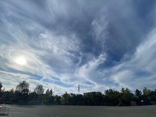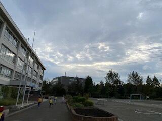 今日は、10月16日(金)です。朝は昨日よりもちょっとひんやり感じた人、多いのではないですか。曇り空でもあり、上着を羽織るとホッとするような朝でした。今日は一日曇りかー・・・と思っていたのですが、午前中からどんどん青空が広がってきました。午後には、秋らしい雲がたくさん青空に浮かび、とってもきれいな空を見ることができました。気持ちが良かったです。