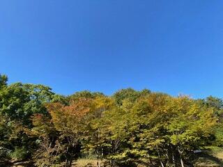 今日は、11月4日(水)です。三連休明けび学校生活は、スカッと晴れ上がった青空のもとスタートしました。新しい週、そして11月がスタートです。駅と永山小学校のちょうど間にある「さえずりの森」も、2年生が出かけて行った頃はそれほどでもなかったのですが、ずいぶん色づいてきました。駅のホームからもよく見えます。