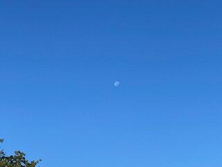 今日は、11月5日(木)です。今日も良い天気です。東の空にはまぶしい太陽。西の空を見上げると・・・そこには月がぼんやりと見えています。