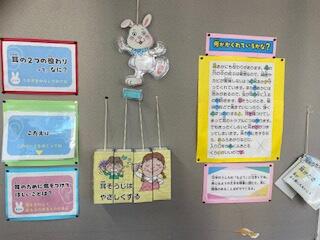 今日は、3月4日(木)です。昨日は3月3日で「耳の日」でもありました。今、保健室前の廊下の壁には、みんなにとって、とっても大事な「みみ」についての掲示がされています。耳の役割や、気を付けなければならないことなどが書かれています。