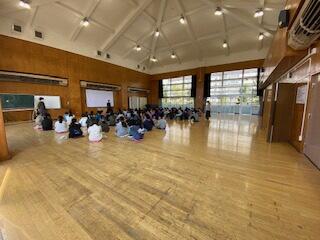 1時間目、学年全体でコスモスホールに集まり、卒業式に向けた学習に取り組んでいました。集まってすぐには、ワイワイとおしゃべりもしていましたが、ひとたび学習が始まると、緊張感ある空気を作り出すことができていました。さすが!です。