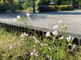 学級園に咲くきれいな白い花。なんだろうなーと思って調べてみると、どうやら「大根の花」のようです。