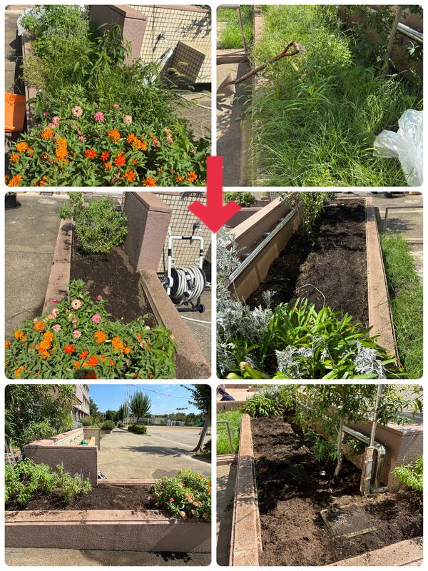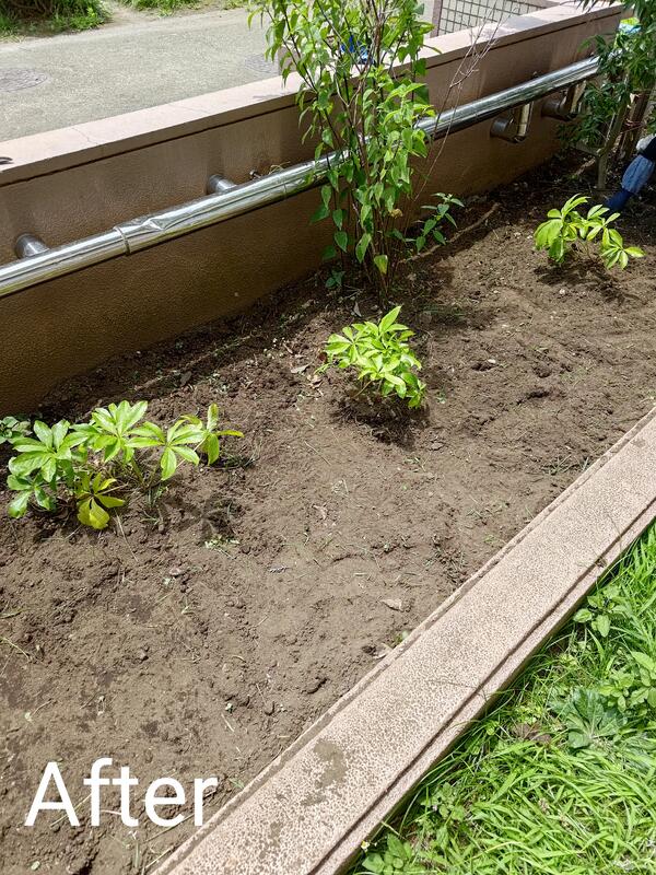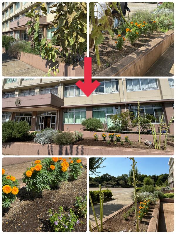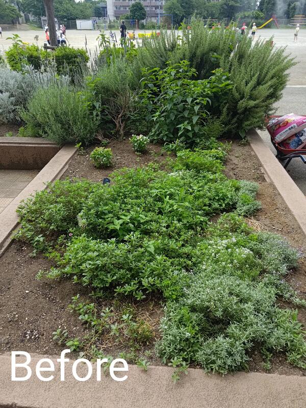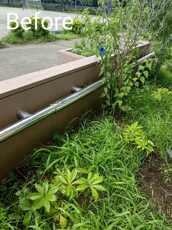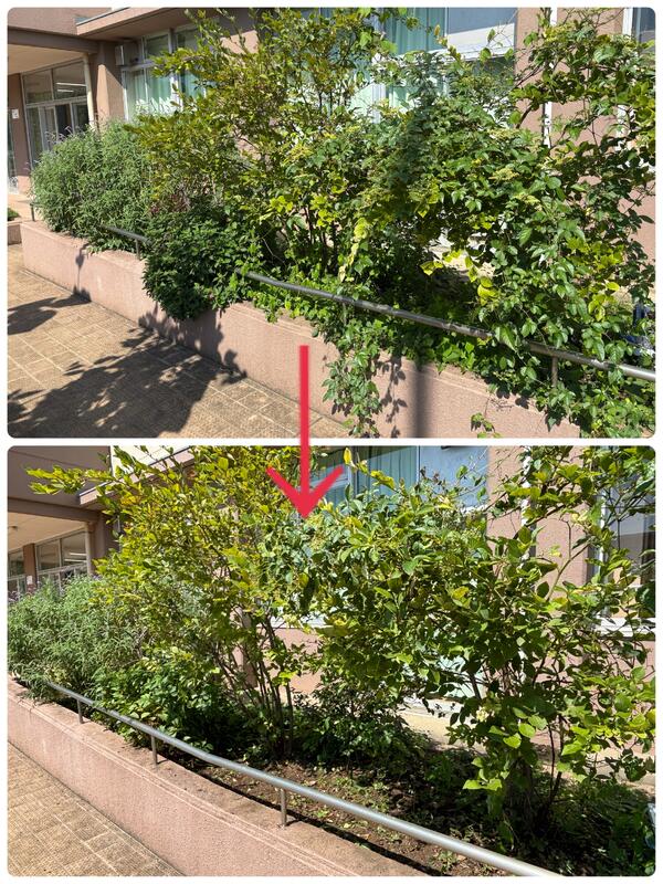 部分は用務員さんにお願いして剪定してもらいました。(ありがとうございました)