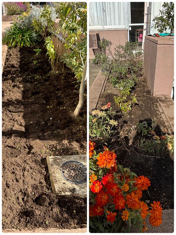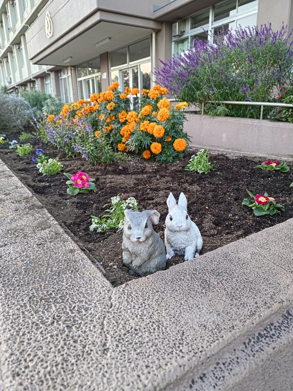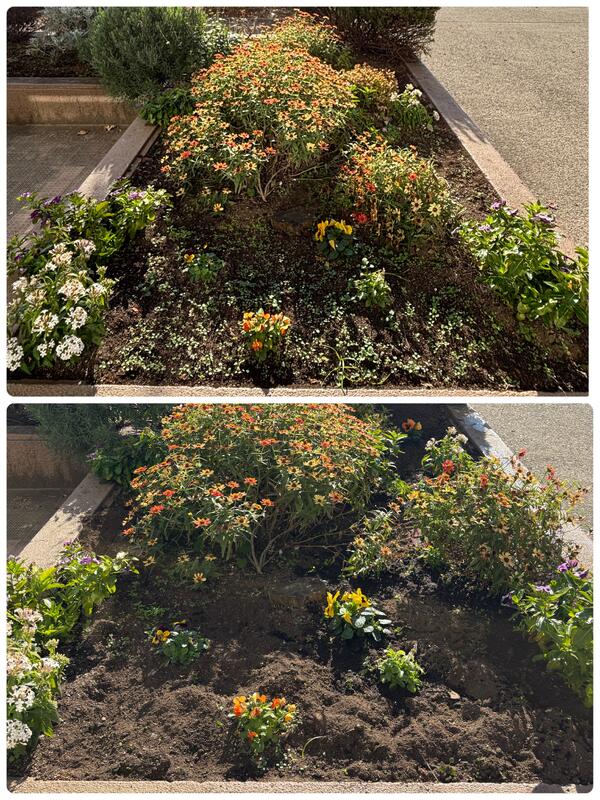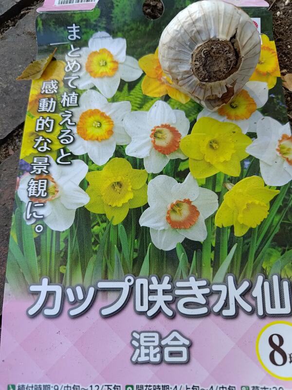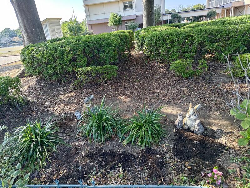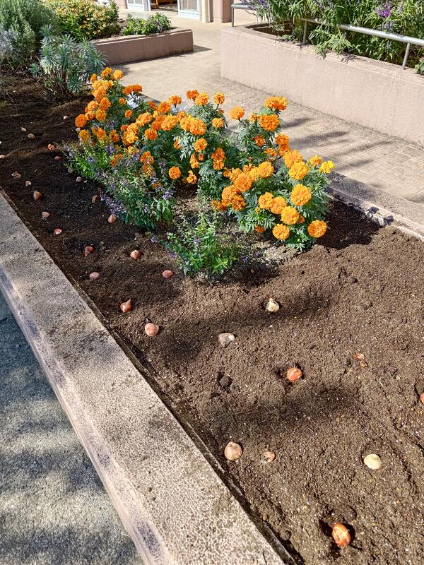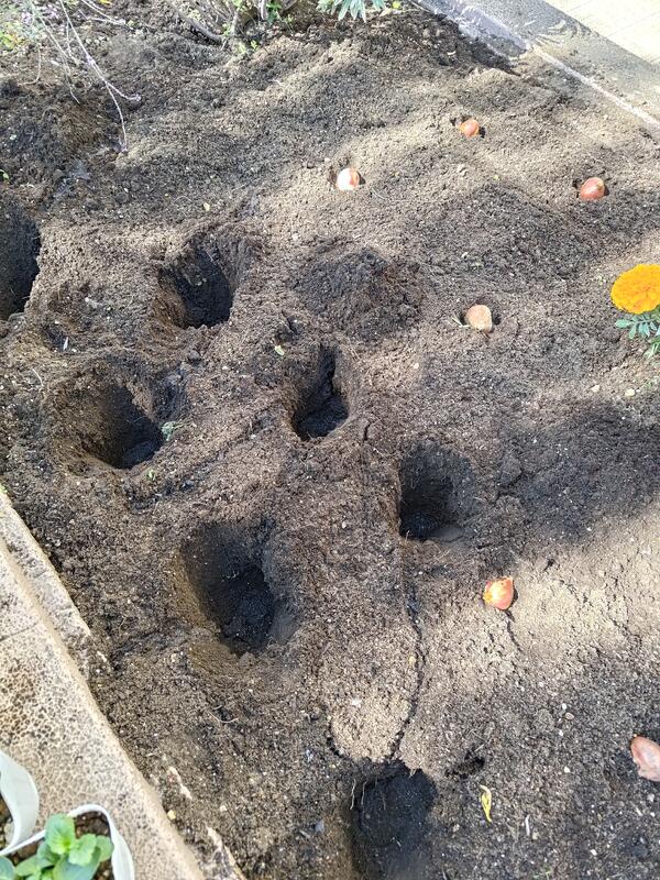 いくつか残っていた球根を正面玄関左手の花壇に植え付けました