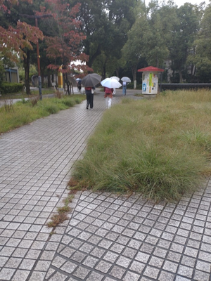 自転車の通行は多くはなかったものの、傘をさしている日は普段以上に道幅を意識できると良いと思いました。