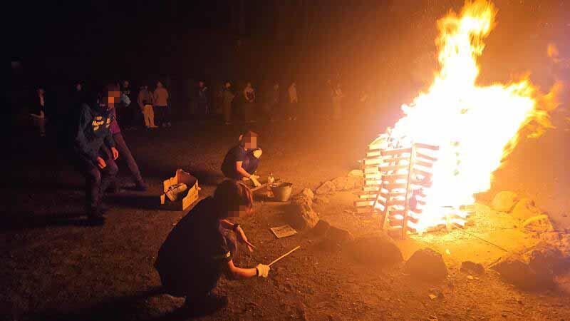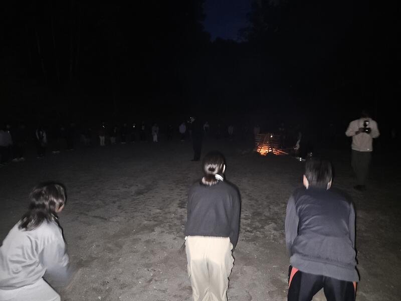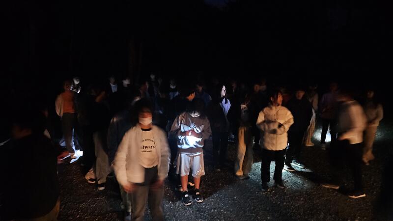 楽しみにしていた星空観察へ。宿舎のご厚意で靴がしっかり乾いたので、気持ちよくテニスコートまで「ナイトハイク」をしながら向かいました。午前中の雨が嘘のようで、八ヶ岳の夜空にキラキラと星が輝いていました。さらに、ツキもあるのか、子どもたちが到着すると、雲の間から月も顔を出してくれました。子どもたちは「五感を意識」しながら、夜の八ヶ岳の自然を感じ取っていました。きっと、心に残る「ナイト俳句」ができることでしょう。