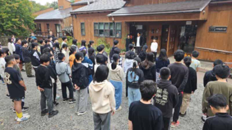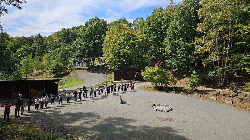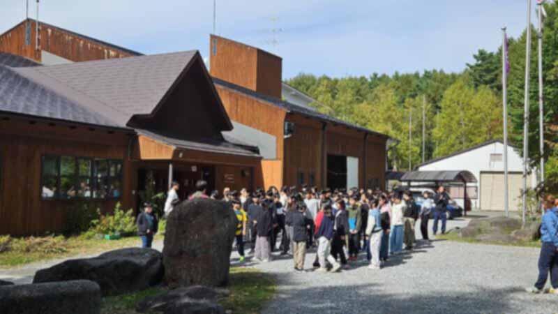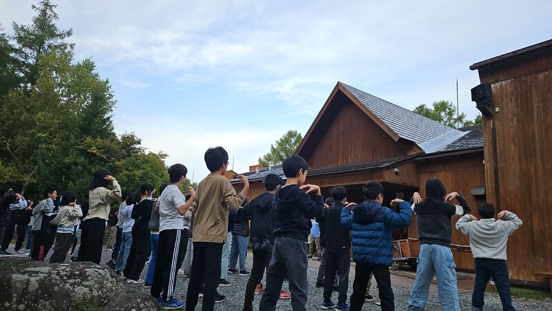 (森林体験全体のHP更新が遅れて申し訳ございませんでした。虫は飛んでいましたが、Wifiはなかなか飛んでいませんでした。)午前中のメイン活動、森林体験の開校式を行いました。児童代表からは、「貴重な体験なので、感謝しながら取り組みたい」という立派な言葉がありました。職員の方からもお話をいただき、活動への期待を高めていただきました。子どもたちは今から約10分間歩き、森の現場へと向かいます。八ヶ岳の自然の中で、多くのことを学んできます!