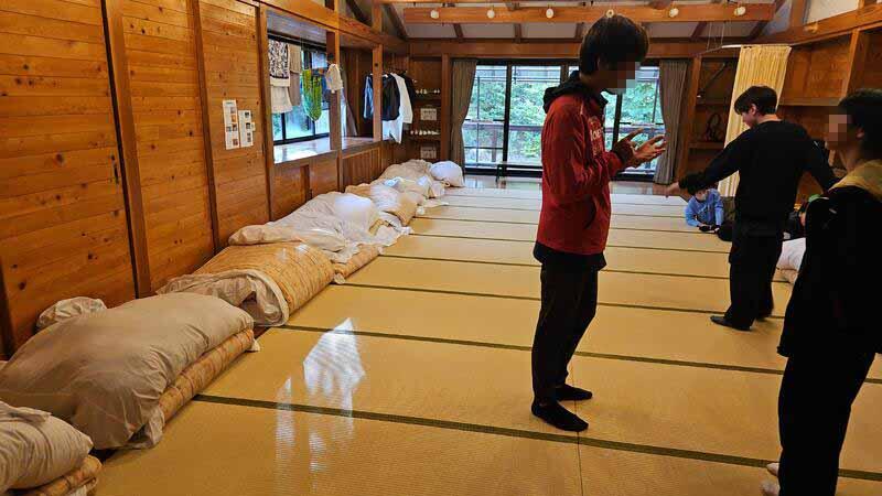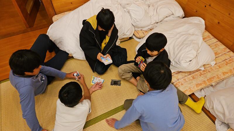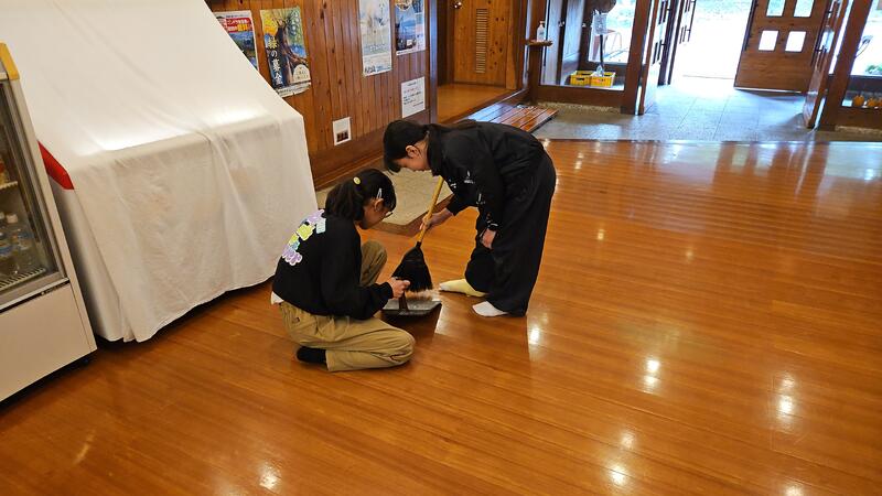 清掃&整頓の時間です。「来たときよりも美しく」を合言葉に、子どもたちはこの目標を常に意識して取り組みました。清掃係が中心となり、みんなで協力して宿舎を隅々まできれいにしています。また、使った寝具の整頓も自分たちでしっかりと行い、担当の先生に確認してもらいました。