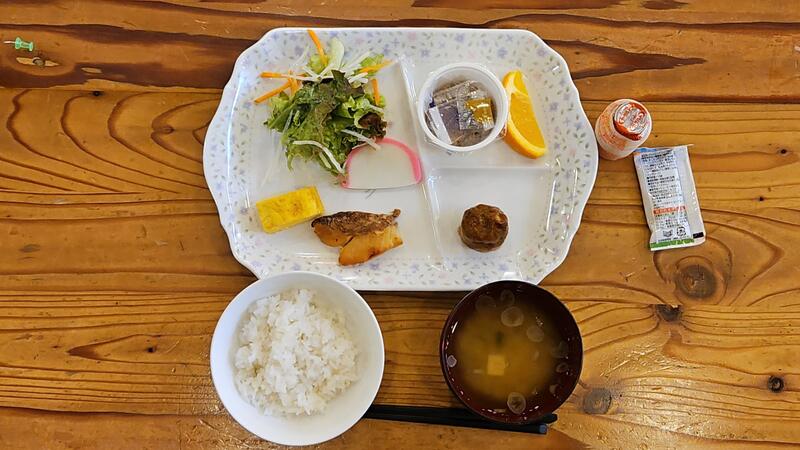 今日のメニューは、温かいお味噌汁、焼き魚、納豆といった和食を中心としたバランスの良い献立でした。さらに、デザートにオレンジとヤクルトも加わり、栄養満点!そして、エネルギー満タンです。