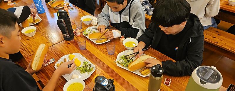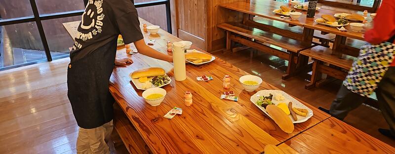 朝食の準備は、食事係が昨日にも増してスピーディに進めてくれました!テキパキと役割分担をし、協力し合う姿はとてもかっこよかったです。そのおかげで、予定よりも10分早く朝食を始めることができました。