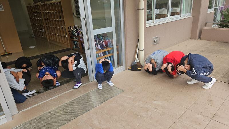 本日午前中に、「予告なしの地震」の避難訓練を実施しました。今回は、前回の指導が生かされ、誰一人私語をせず、真剣に訓練に取り組むことができました。訓練後、校長から、最初の小さな揺れを感じ取ることの大切さの話がありました。「少しでも揺れを感じたら、すぐに机の下にもぐり、頭を守ること」「大きな声で揺れを周りに知らせること」が具体的な行動として伝えられました。いつ起こるかわからない災害に対し、「とっさに行動できる力」をこれからも磨いていきたいと思います。