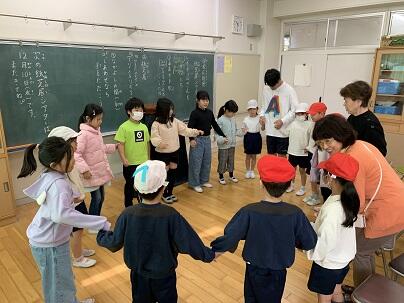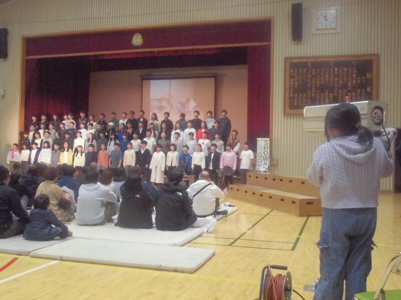 最後はいつものように、なかよしの輪(平和の輪)を作って、「幸せなら手をたたこう」です。1年生から5年生まで一つの輪になり、手を繋いで笑顔の歌い納めができました。