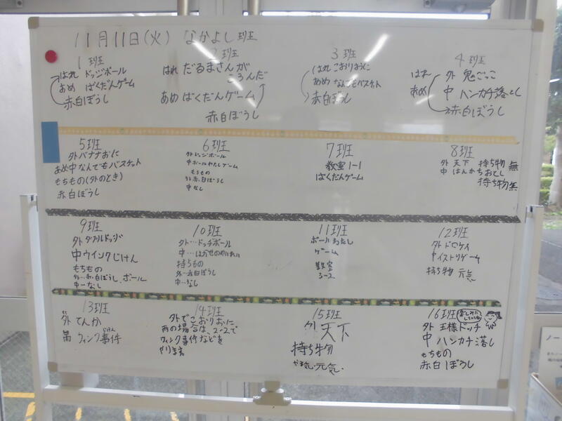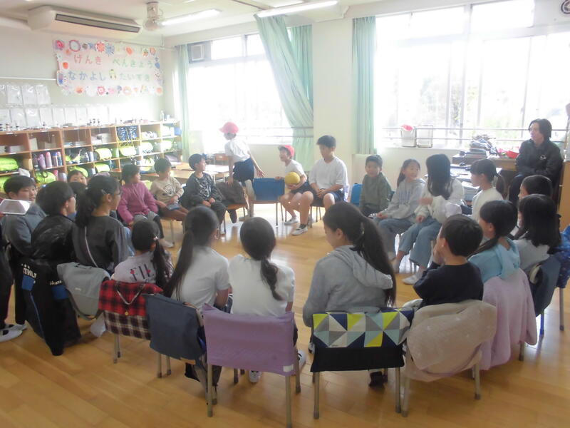本日の昼休みは、全校の縦割り班による「仲良し班遊び」を実施しました。先週の学芸会を終え、ほっと一息ついた中、子どもたちは異学年の友達と楽しく交流しました。外は少し肌寒い陽気でしたが、校庭で遊ぶ班は寒さを吹き飛ばすように元気に走り回り、仲良く遊ぶ姿が見られました。一方、教室で活動する班も、工夫を凝らした遊びで、落ち着きながらも盛り上がっていました。上級生が下級生を優しくリードし、楽しく活動することで、縦割り班の絆がさらに深まったロング昼休みとなりました。
