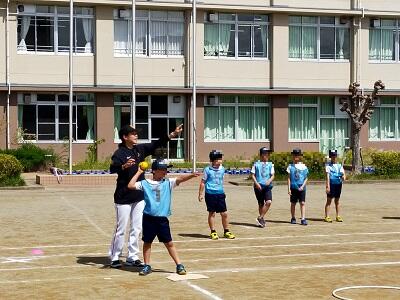 今日は、毎年恒例となりました「ジャイアンツ出前授業」を3年生が体験しました。読売ジャイアンツから2名の講師をお招きして「投げる運動」を教えていただきました。小学生の「投げる力」が低下してきたと言われて数年が経っています。体育でも意識的に扱っている運動です。今回は、「トン・トン・投げる」のタイミングと「投げるが多いボールゲーム」を教わりました。子どもたちは大盛り上がりでゲームに夢中でした。ジャイアンツアカデミーの講師の皆様、今年も楽しい授業をありがとうございました。