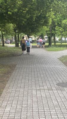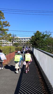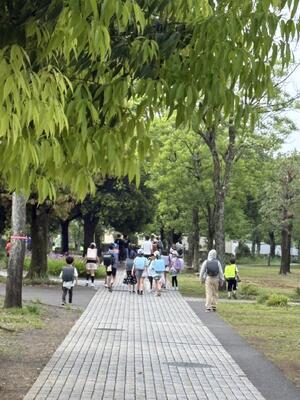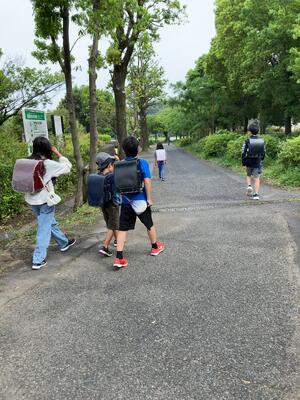- 宝野公園周辺の道が狭くなる所で広がって歩いていましたが、声を掛けるとすぐみんなで端に寄って歩いてくれました。