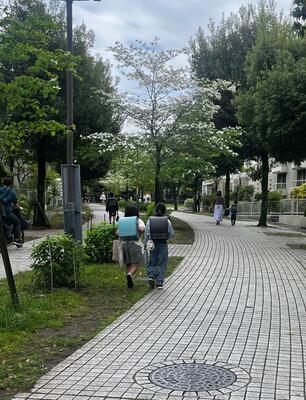 - 立ち止まっている子どもたちもいましたが、少しお喋りした後はちゃんとそれぞれの道に分かれて帰っていました。