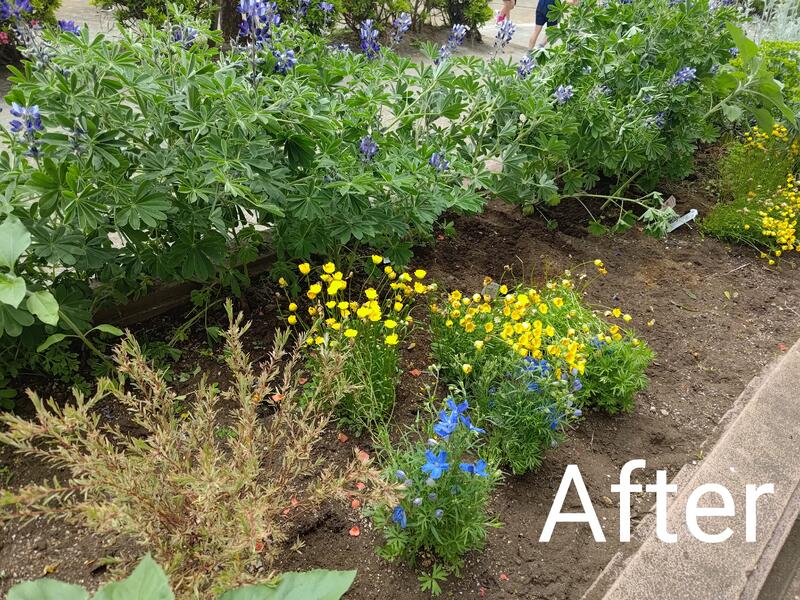 前年度の役員さん達が昨年の夏に種から大切に育ててくれたルピナスの花もぐんぐんと成長していました。