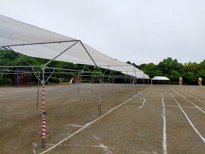 【学校・学年・学級等から】5月23日(木)テント張り、日除け設置