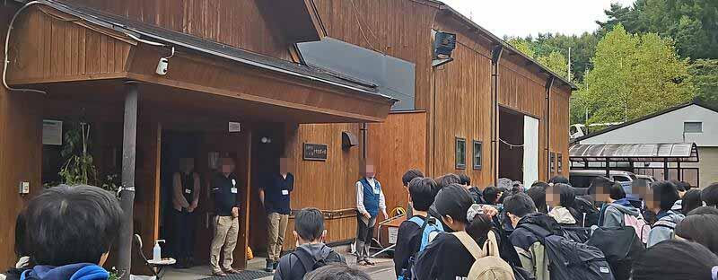 高根クラインガルデンに到着し、いよいよほうとう作りがスタート!はじめの会では、スタッフの方から「自分たちで作ったほうとうをお腹いっぱい食べてください」という温かいお話がありました。みんな、自分たちでイチから作る山梨の郷土料理にワクワクしていました。