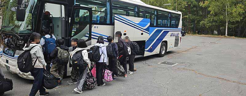 お世話になった多摩市立少年自然の家を出発しました。施設の皆様には、最後まで温かいお見送りをしていただき、ありがとうございました。八ヶ岳での思い出を胸に、学校へ戻ります。卒業してからもこの思い出の地を訪れる機会があるといいですね!