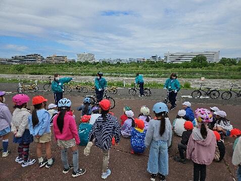 曇り空で肌寒い日でしたが、2年生の交通安全教室」が実施できました。本校から多摩第一小の近くの多摩市立交通公園までバスで行きました。多摩川の土手沿いは強い風が吹いてくることもありましが、頑張って歩きました。2年生は、昨年に続き2度目の学習でした。「自分の命を守る交通マナー」のお話を改めて聞きました。歩き方、横断歩道の渡り方、そして昨年よりも一回り大きな自転車にも挑戦しました。歩き方、自転車の乗り方が昨年よりも上達していた子がたくさん見られました。
