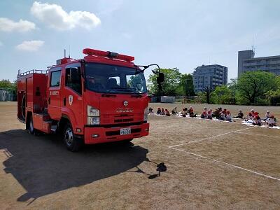 【学校・学年・学級等から】4月26日(金) はたらく消防の写生会 1・2年生