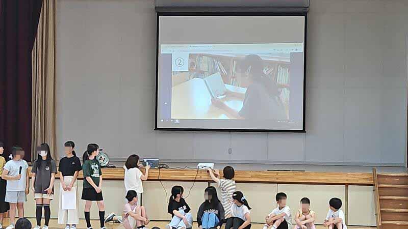 本日、図書委員会による「図書集会」が開かれました。集会では、映像クイズを通して「本の扱い方」や「図書室での過ごし方」などについて楽しく学びました。また、読書週間中のイベントとして、読書の楽しさを広げるスタンプラリーや先生方からのおすすめ読書の紹介がありました。一人でも多くの子どもたちがよい本に出会ってほしいと思います。