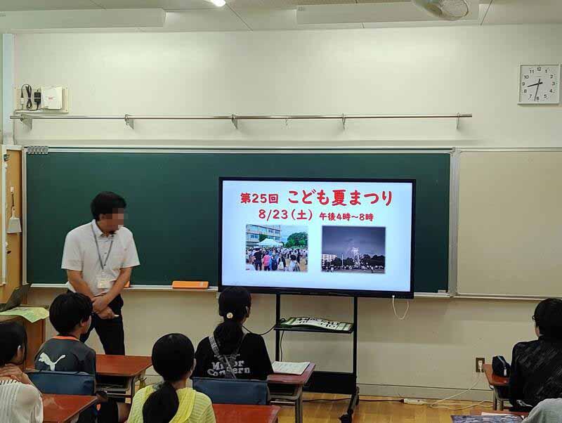 本日、前期前半最終日を迎えました。暑さを考慮し、全校朝会を教室へのオンライン中継で行いました。校長からは「困ったときは一人で悩まず相談しよう」という大切なメッセージ、駐在所の加藤さんからは交通安全、防犯について、そして生活指導主任からは夏休みに気を付けることについての話がありました。明日から38日間の夏休みです。教職員一同、子どもたちが安全で楽しい夏休みを過ごせるよう願っています。前期前半の教育活動へのご支援・ご協力をいただき、誠にありがとうございました。