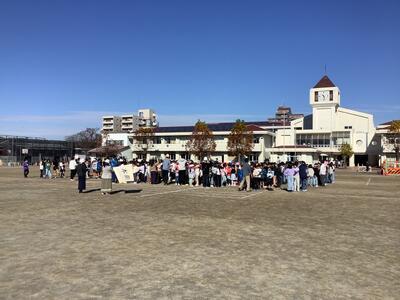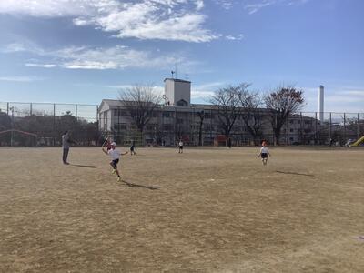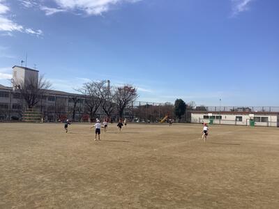校庭でなわとびに取り組む1年生です。広い校庭で縄を回しながら走り回っています。身体を動かして健康な生活を送りたいです。