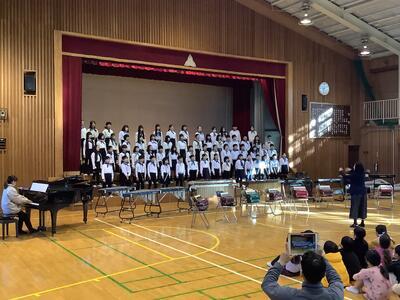 5年生のみなさんが、素晴らしい合唱と合奏を披露してくれました。今週末に控えた多摩市連合音楽会で発表する曲です。
