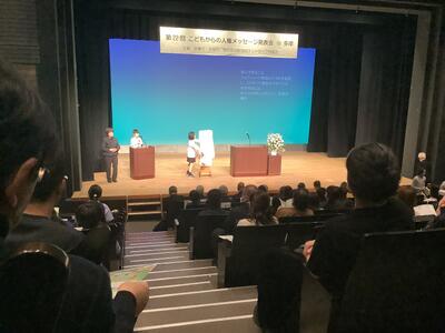 週末にパルテノン多摩で行われた「第22回こどもからの人権メッセージ発表会in多摩」。本校からは6年生の代表が自分で感じたこと、考えたことを発表してきました。「みんなと違うことは悪いことではない」「やさしさは相手のことをわかること」「みんなが安心して過ごせるよう、やさしい目で見てあげられる人になりたい」。立派に発表してくれました。また、2人の6年生は全体の司会をしっかりと務めてくれました。ありがとうございました。