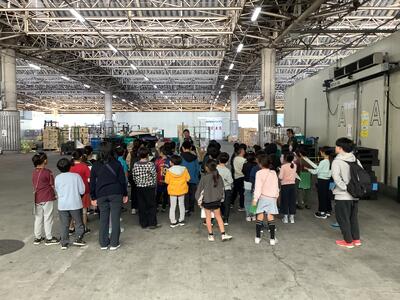 多摩地域で唯一の青果市場。大きな敷地内を歩いたり、市場の様子を映像で見たり。