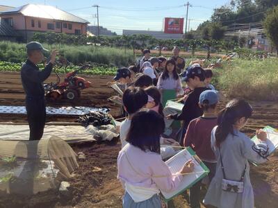 和田地区にある農家さんの畑にお伺いしました。作物を作る工夫や苦労をお話しいただきました。