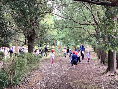 落ち葉が通路を埋め尽くすようになってきました。その上を元気よく走り、落ち葉を踏む音を楽しむ子供たち。