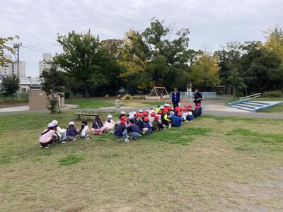 宝野公園ではどんぐり拾いを楽しみました。拾ったどんぐりを使って顔を作って楽しむ子供も…。