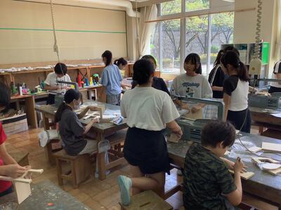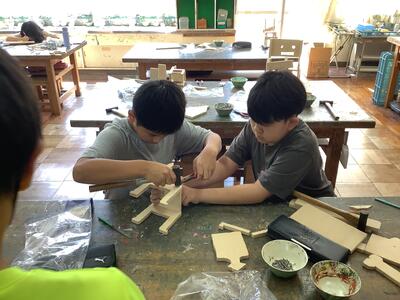 6年生の図工、木工作に取り組んでいます。「ナイスないす」