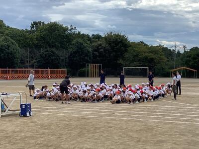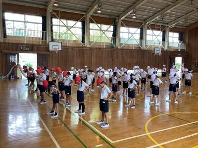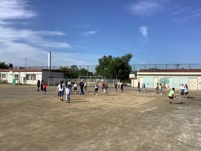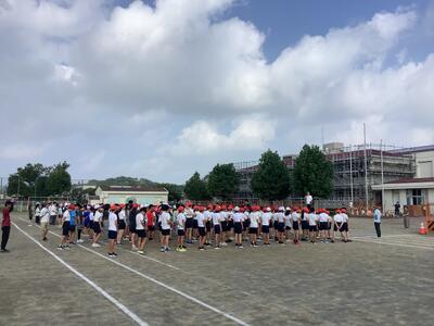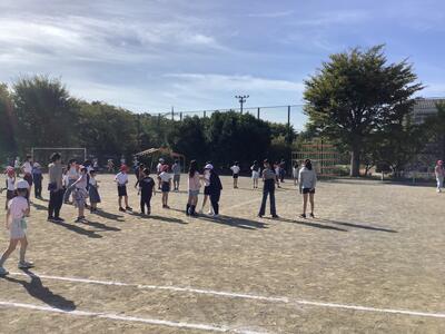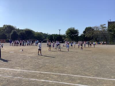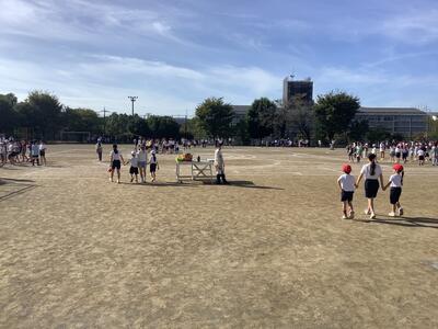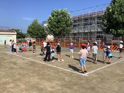 校庭で工事を行なっている関係で、運動会の競技をどのように行なっていくか計画も見直しています。本日、大玉送りの並び方を試してみました。さっと指示を聞いて移動したり並んだりできるところが本当にすばらしいですね♪
