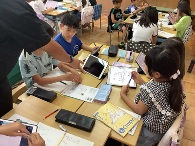 自分の考え方をタブレットに入力して、友達と共有していきます。