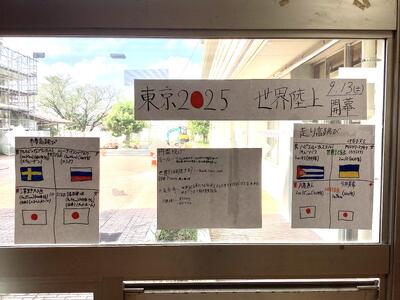 9月13日から開催されている「東京2025世界陸上」。盛り上げようと体育委員会の皆さんが、掲示物を作成しました。主な競技の世界記録と日本記録が紹介されています。