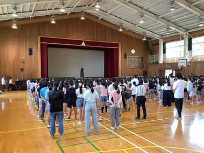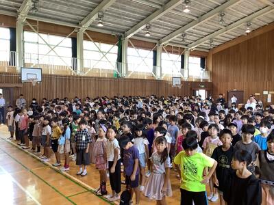 時間前にも関わらず、全校児童が集まり、静かに待つ姿。すばらしい!